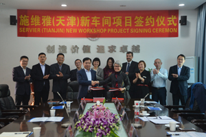 Ms. Jianmin Zhang (the factory manager of Servier (Tianjin) Pharmaceutical Co., Ltd.) and Mr. Philippe Gaucher (the technology manager of Servier (France) headquarters) visited our company on 7th March. They signed the “EPCM services contract for Servier (Tianjin) new workshop project” with our company. Xueming Zhang (the general manager of the company) and Ying Zhu (the vice general manager of the company / the general manager of chemical & pharmaceutical division) were present during the signing ceremony.