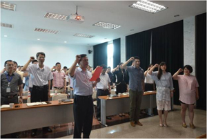 黨課開始前,萬軍同志帶領預備黨員進行入黨宣誓。參加黨課的全體黨員也一起重溫入黨誓詞。