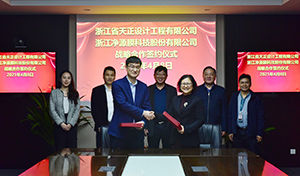 近日,浙江省天正設(shè)計(jì)工程有限公司與浙江凈源膜科技股份有限公司共同簽署戰(zhàn)略合作協(xié)議。雙方基于“優(yōu)勢(shì)互補(bǔ)、資源共享、合作共贏”的原則,就高強(qiáng)纖維復(fù)合PTFE膜產(chǎn)品在工程項(xiàng)目中的應(yīng)用達(dá)成一致。