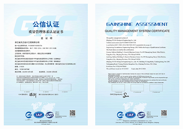 公司管理體系涵蓋工程設計、工程咨詢、工程總承包及工程項目管理產品。公司通過制定質量、環境、職業健康安全方針、目標,并依據方針、目標管理控制公司的活動、產品和服務,達到公司的產品質量讓顧客滿意,公司的環境績效持續滿足法律法規和其他要求,公司的員工及相關方可能面臨的職業健康安全風險得以消除或控制。